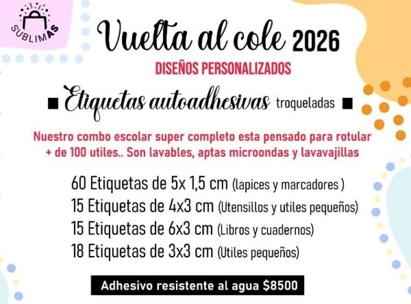 te ofrecemos un combo pensado para rotular los objetos de higiene , libros, cuadernos , útiles pequeños y lapices y marcadores